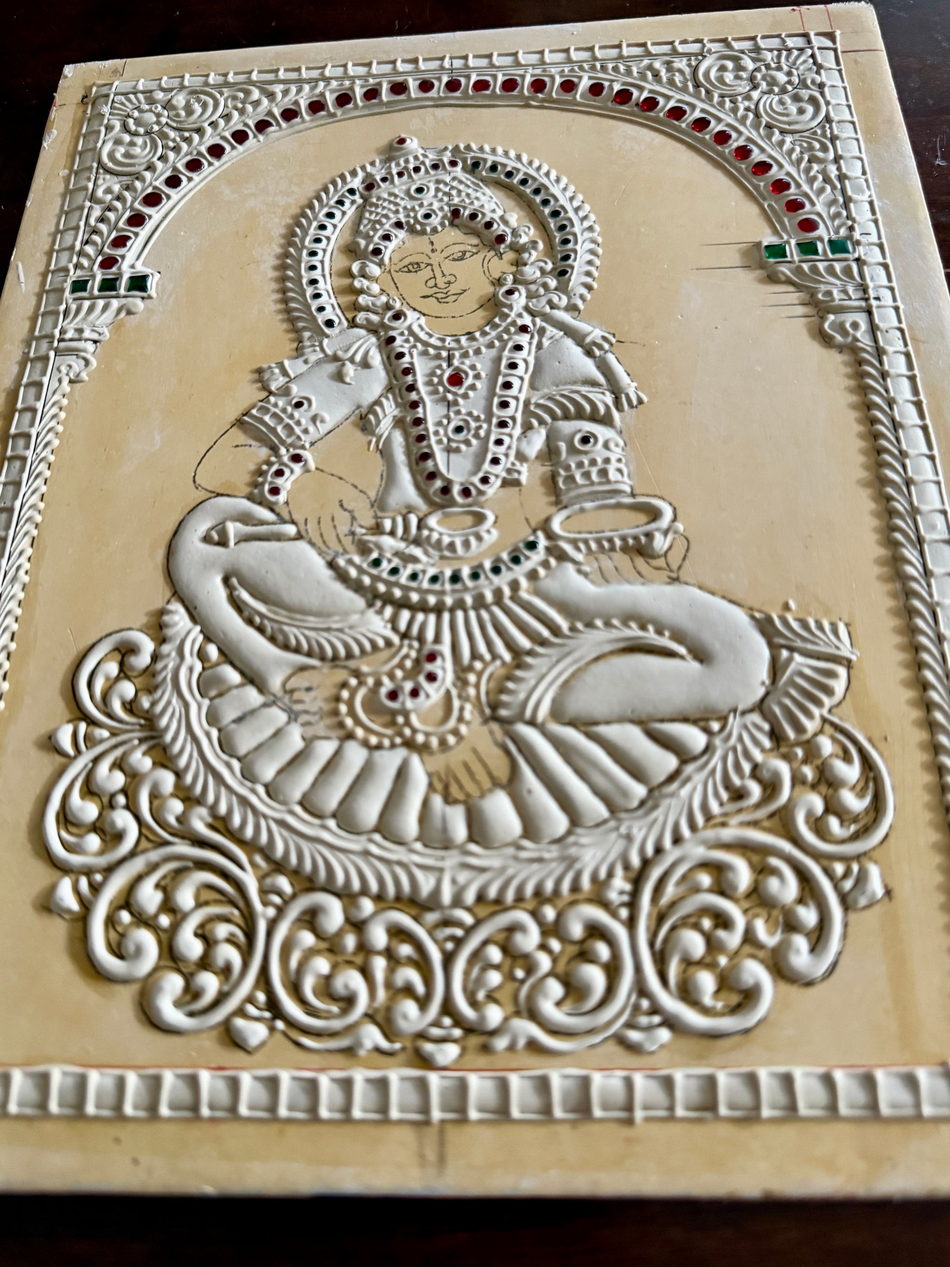 This 3D muck board is prepared in traditional Tanjore painting style