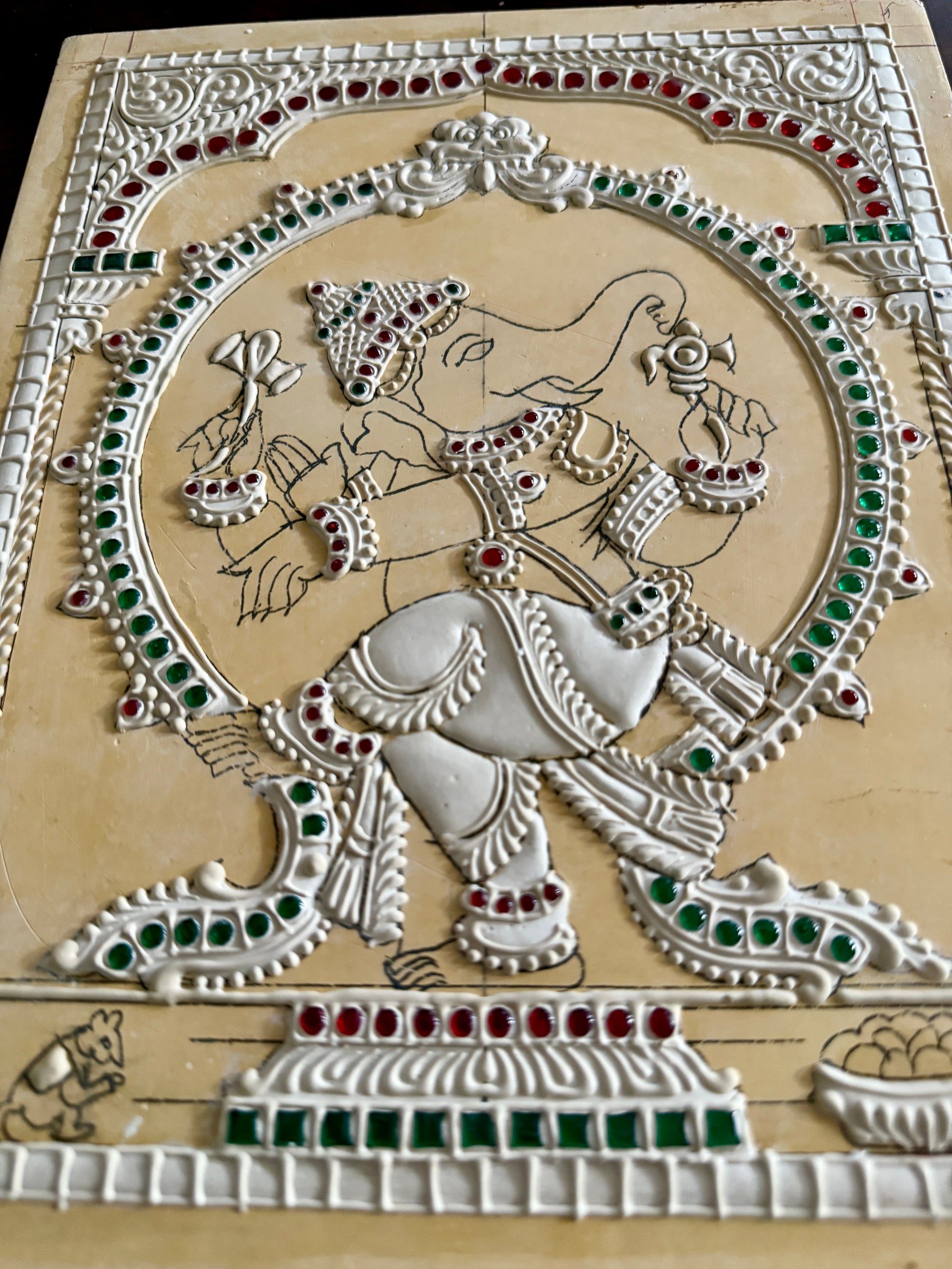 This 3D muck board is prepared in traditional Tanjore painting style